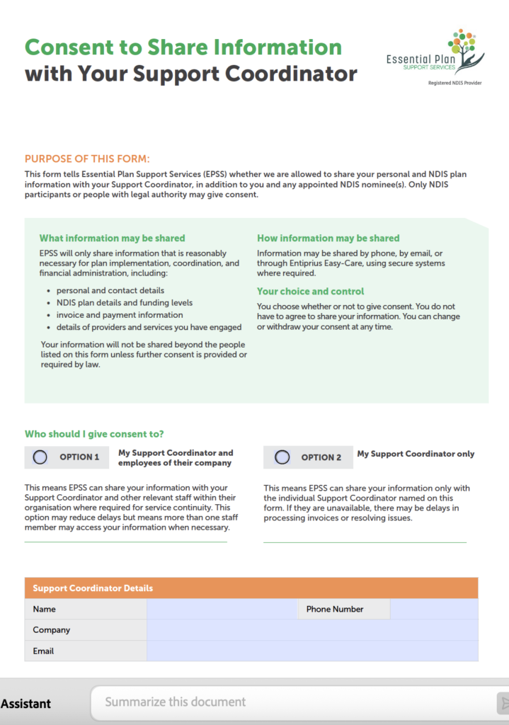 Either fill in the applicable forms online or download the required form and email back to us at admin@essentialplan.com.au. If you have any issues with these forms please call 0474 329 544.